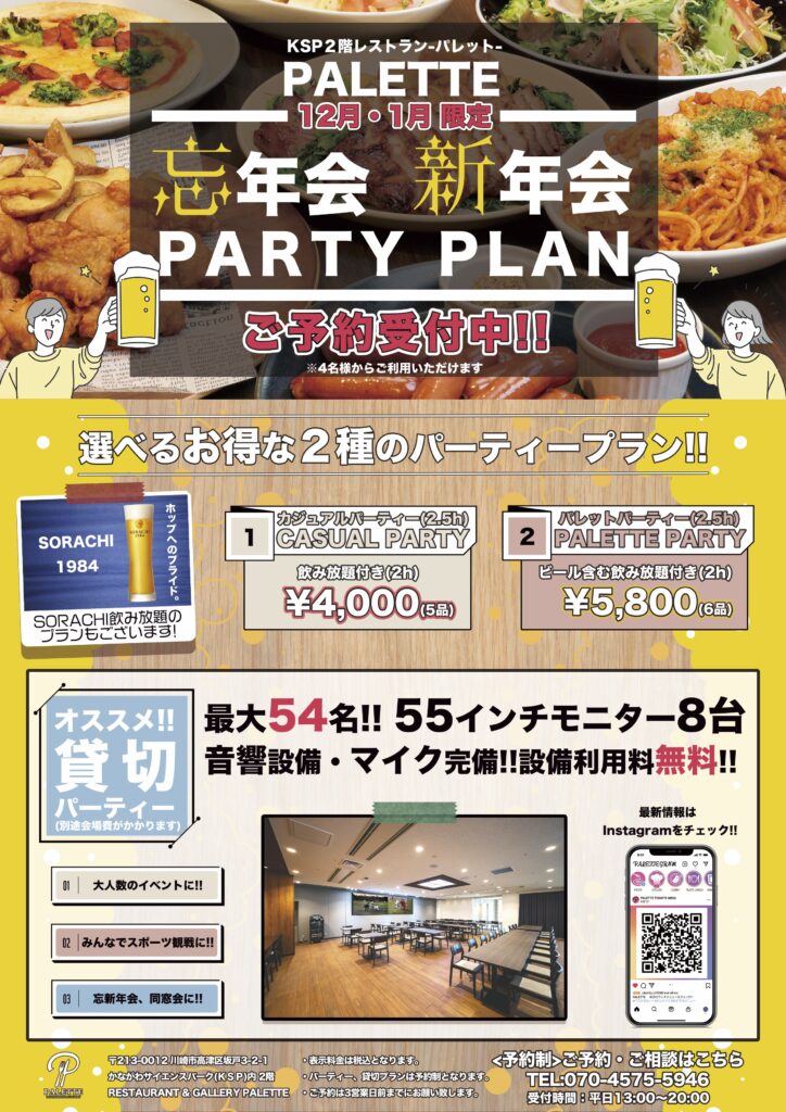 このたび、より多くのお客様に楽しいひとときをお過ごしいただけるよう、新しいパーティープランをご用意いたしました。大切なご友人やご家族、同僚とのお集まりにぴったりの内容となっております。お子様向けのソフトドリンク飲み放題プランもございますのでお気軽にお問い合わせください!